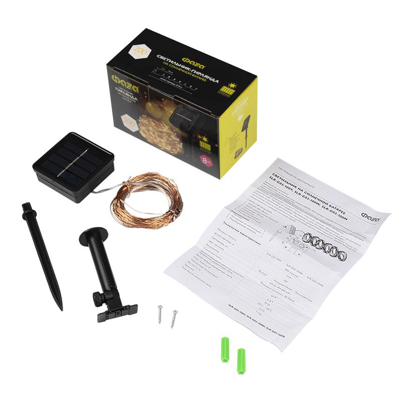 Материал корпуса светодиодной панели и колышка – ABS-пластик, в гирлянде используется медный провод.