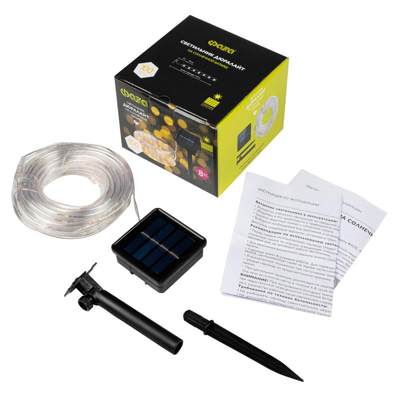 Светильник светодиодный садовый SLR-G06-100Y 100LED дюралайт (заменяемый Ni-MH 500мА.ч аккумулятор) желт. ФАZА 5060104