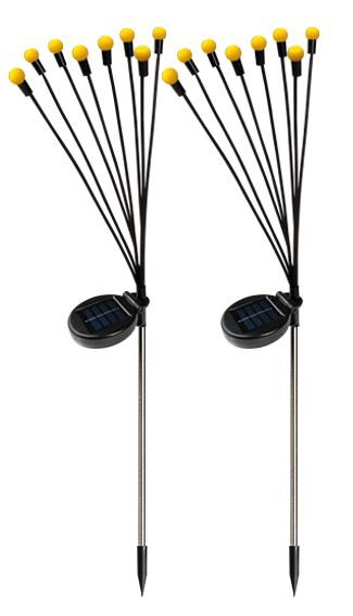 Комплект из 2-х ландшафтных светильников «Светлячки» с солнечной батареей. Предназначены для декоративной подсветки клумб, газонов, альпийских горок, дорожек на садовых и дачных участках, а также на дворовых территориях. В темное время суток светильник светится от аккумулятора Ni-MH 600мАч, заряженного в светлое время суток. Время непрерывной работы от полностью заряженного аккумулятора: 8 часов. Время зарядки аккумулятора: 6-8 часов. Источники света - 8 светодиодов. Автоматическое включение/выключение светильника при наступлении темного/светлого времени суток (фотосенсор). Высота светильников 70 см. Степень защиты IP44