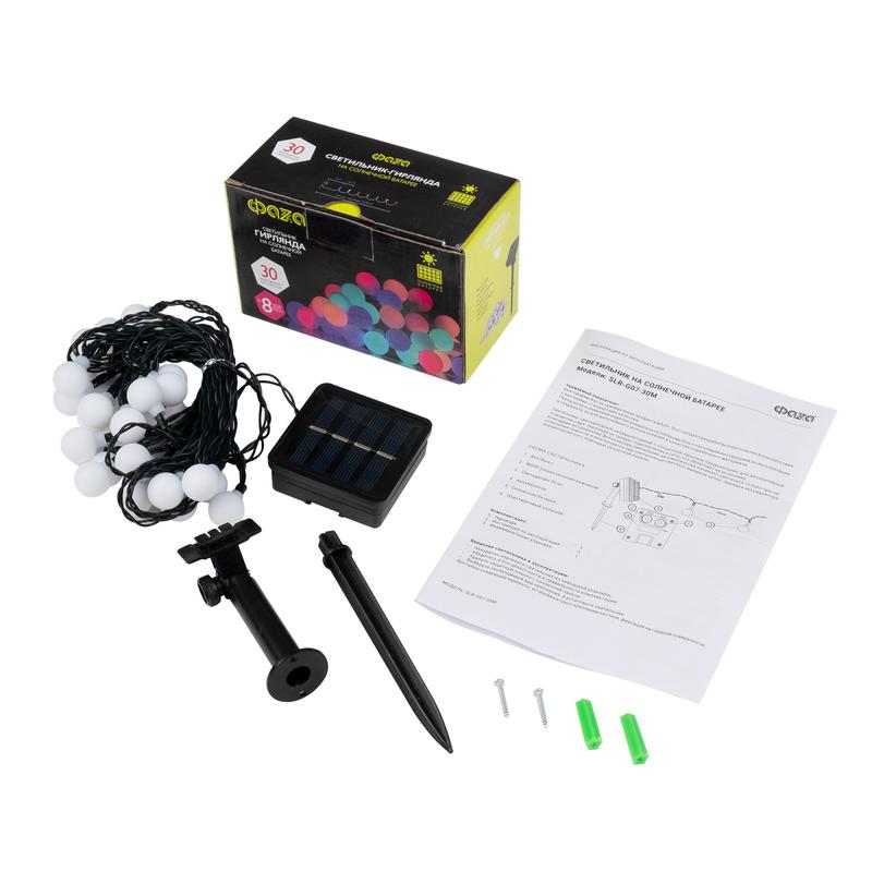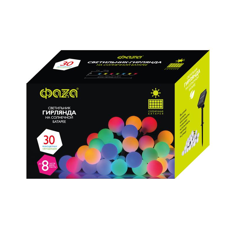 Светильник светодиодный SLR-G07-30M садовый; гирлянда матов. шарики мультицвет солнечная батарея ФАZА 5040847