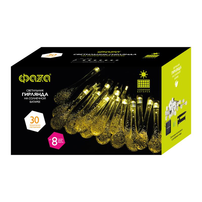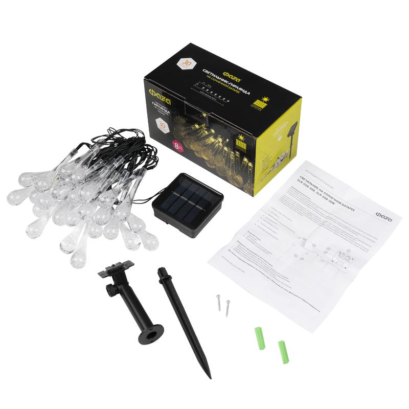 Светильник светодиодный SLR-G08-30W садовый; гирлянда капли теплый бел. солнечная батарея ФАZА 5040960