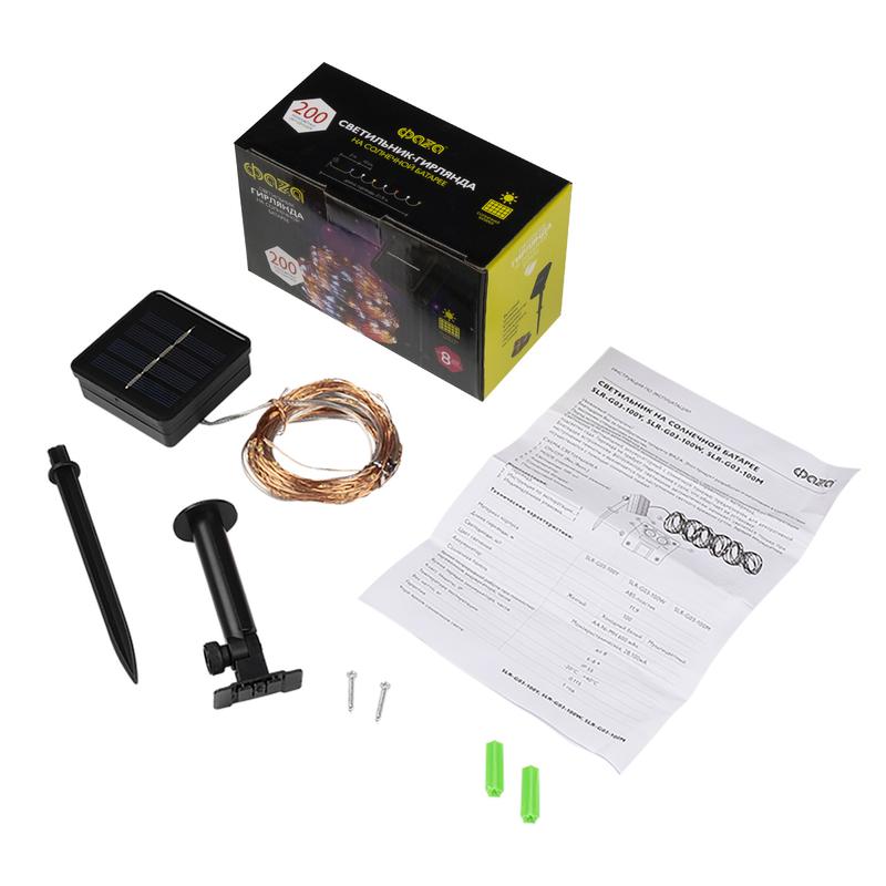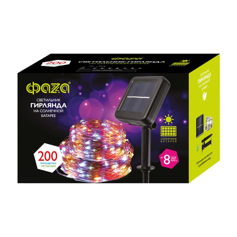 Светильник светодиодный садовый SLR-G03-200M нить 200LED мультицвет с колышком на солнечн. батарее ФАZА 5036406