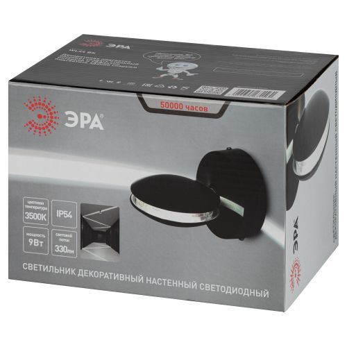 Светильник светодиодный WL44 BK 9Вт 3500К IP54 для интерьера/фасадов черн. Эра Б0054424 -