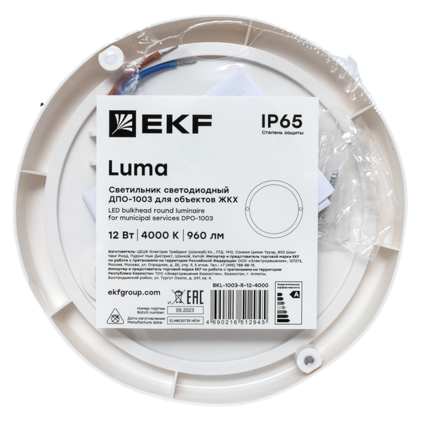 Светильник светодиодный ЖКХ ДПО-1003 12Вт 6500К IP65 круг LUMA EKF BKL-1003-R-12-6500 -