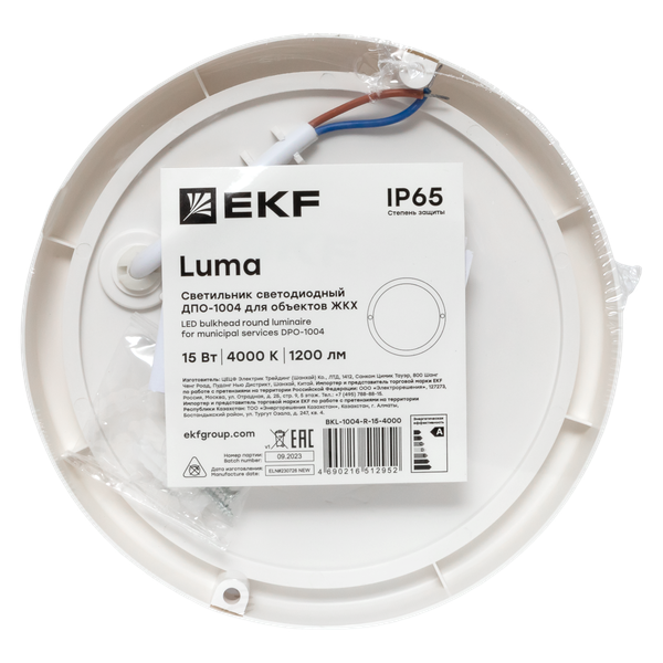 Светильник светодиодный ЖКХ ДПО-1004 15Вт 6500К IP65 круг LUMA EKF BKL-1004-R-15-6500 -