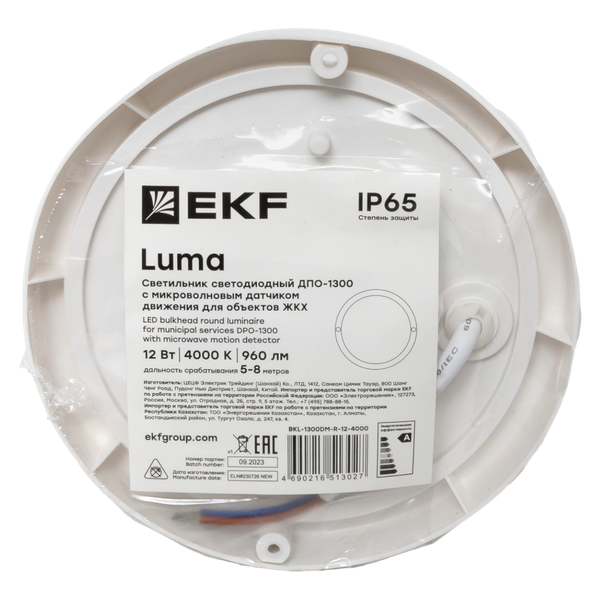 Светильник светодиодный ЖКХ ДПО-1300 12Вт 6500К IP65 круг с микроволнов. датчиком движения LUMA EKF BKL-1300DM-R-12-6500