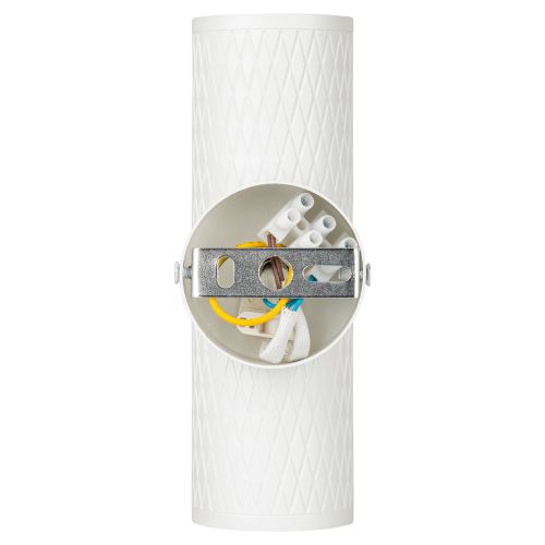 Светильник декоративный настенный WL46 WH предназначен для освещения гостиных, коридоров, спальных комнат. Создает интересные световые композиции, подчеркивает структуру материалов, формирует неожиданные эстетические эффекты. Цоколь для источника света GU10, напряжение питания ~230В 50/60Гц, материал металл, пластик, цвет светильника белый, размер D55х85x170мм, максимальная мощность лампы 12 Вт, степень защиты IP20
