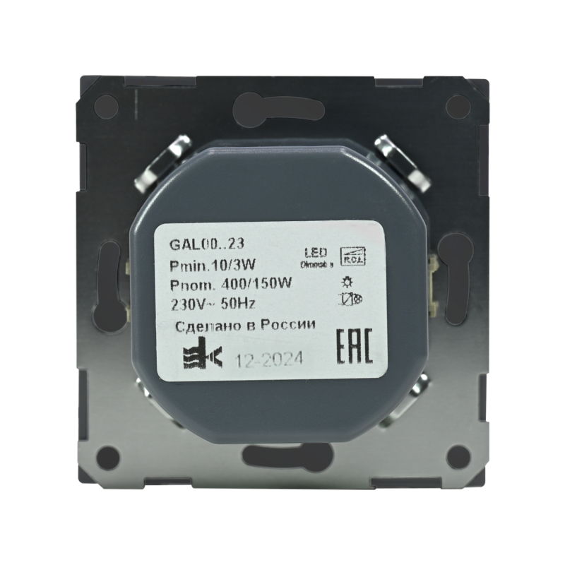 Механизм светорегулятора Systeme Electric серии ArtGallery в цвете белый поворотно-нажимной для нагрузки мощностью до 400 Вт, подходит для LED ламп.