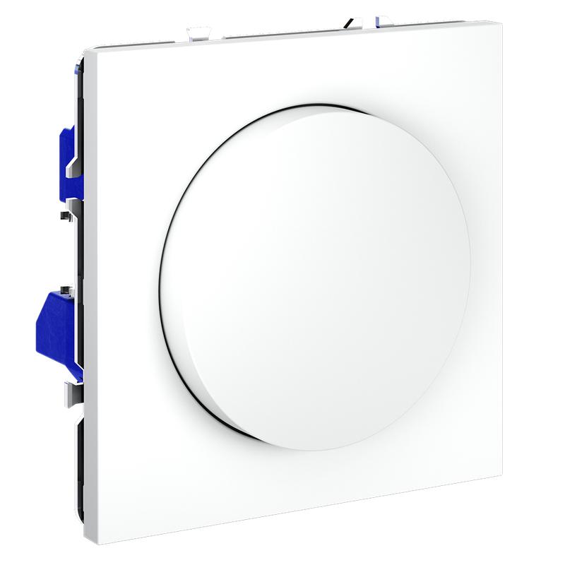 Место установки. Светорегулятор необходим для управления яркостью освещения в помещении. Устройство совместимо с любым источником света, поддерживающим фазное диммирование. Корпус. Светорегулятор выполнен в виде вращающейся кнопки, позволяющей регулировать яркость в широком диапазоне. При нажатии на нее устройство работает как выключатель (включает/выключает освещение). Корпус — устойчивый к повреждениям и нагреву поликарбонат. Конструктивные особенности. Максимальная резистивная нагрузка светорегулятора — 300 Вт, минимальная — 5 Вт. Можно подключить устройство как обычный выключатель или по проходной схеме. Диммирование базируется на методе отсечения по заднему фронту, что гарантирует совместимость со светодиодными лампами и исключает появление резких колебаний напряжения. Ток увеличивается плавно, что особенно важно для сохранения производительности и долговечности светодиодных источников. Предусмотрена регулировка ограничения минимального уровня яркости (под накладкой механизма).
