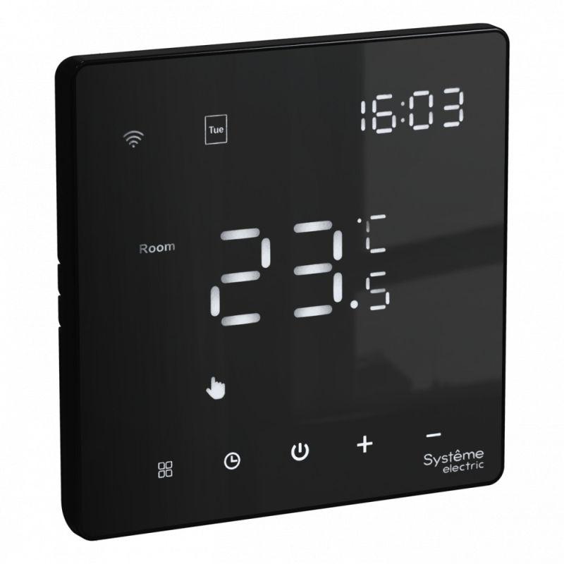 Термостат для электрического теплого пола Systeme Electric серии ArtGallery в цвете черный с Wi-Fi, 16 А