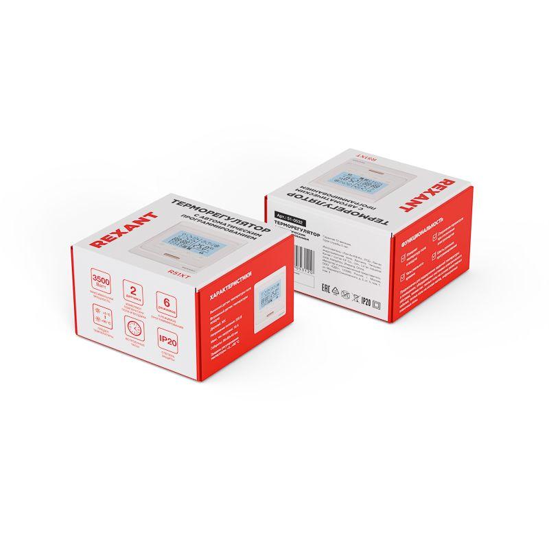 Термостат программируемый R51XT (HW-500; RTC 51.716; ST-16; ETT-1) 3.6кВт 16А для теплых полов датчик пола; датчик воздуха бел. Rexant 51-0532