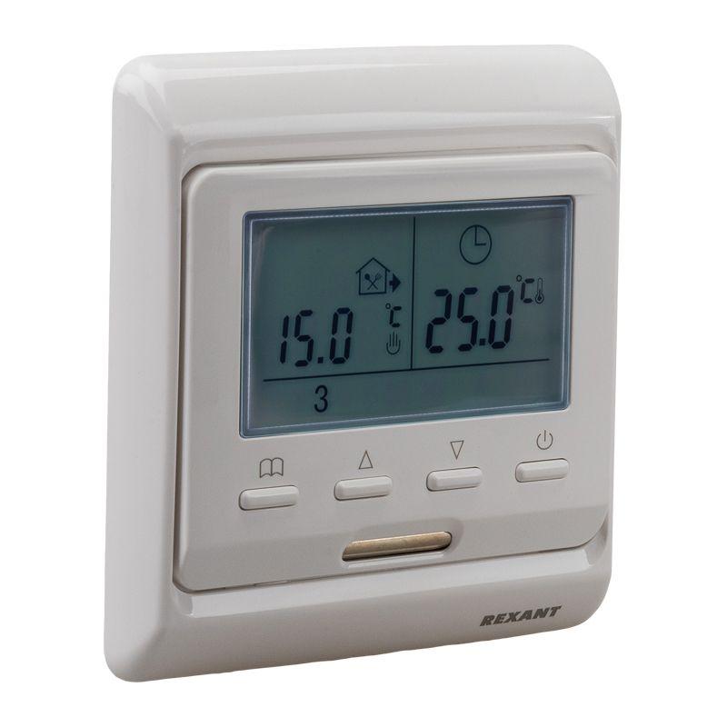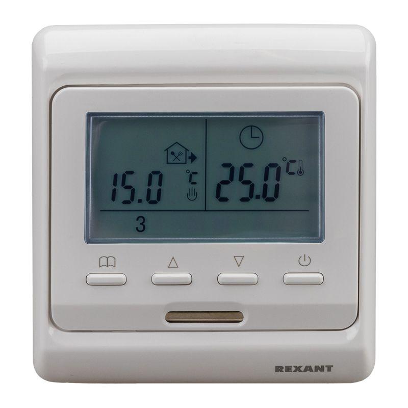 Программируемый терморегулятор с выносным датчиком температуры пола R51XT REXANT предназначен для установки с любыми системами напольного обогрева: теплые полы на основе резистивных кабелей, теплые полы на основе матов, инфракрасные пленочные полы. Представляет собой многорежимный термостат со встроенным блоком реального времени и календарем. Предполагает суточный цикл распределения комфортной температуры по времени.