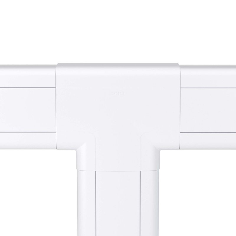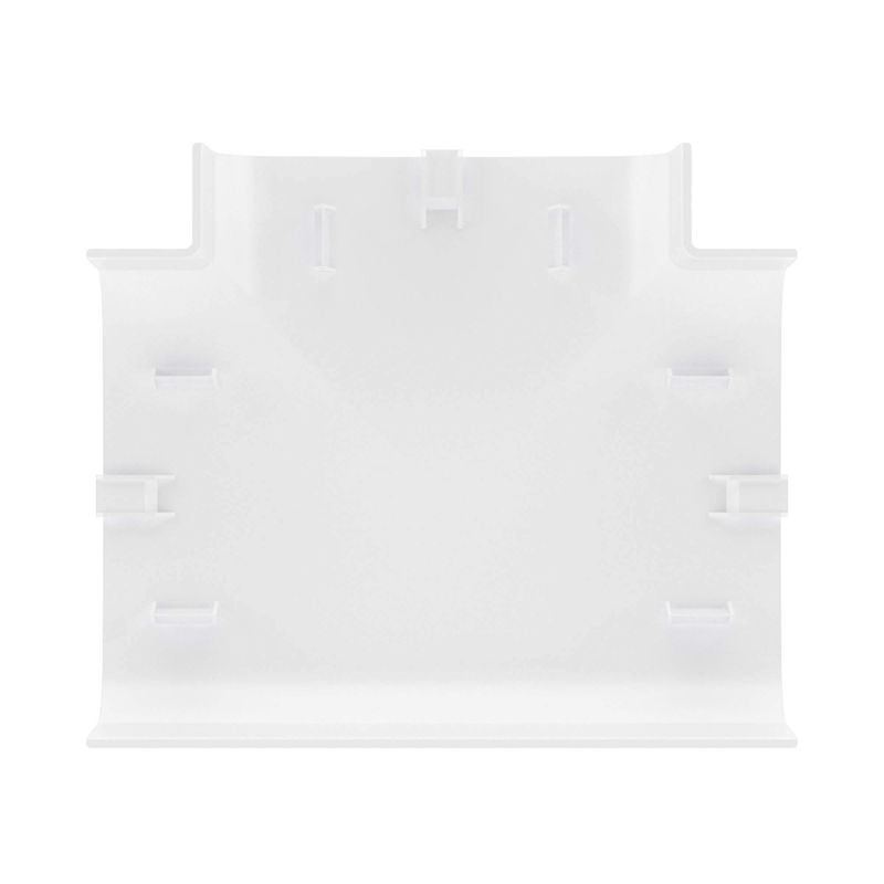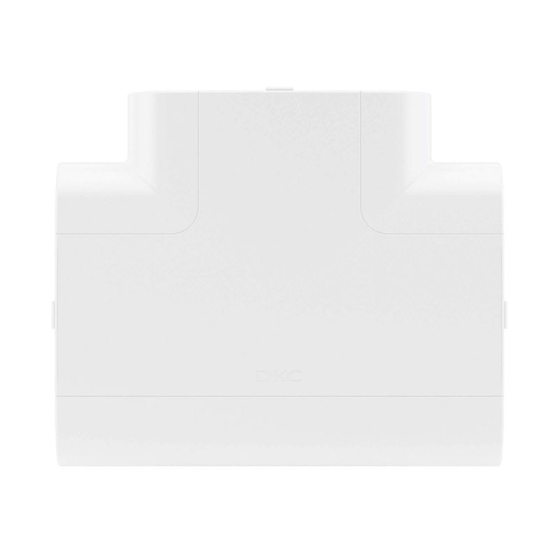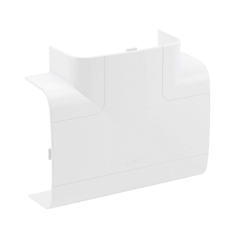 Тройник (Т-образный отвод) предназначен для безопасного и декоративного оформления мест Т-образного соединения кабельных коробов. Конструкция состоит из внутренней базы с разделителем и внешней декоративной накладки, формирующих прочное и точное соединение без зазоров. База и разделители выполнены из ПНД, устойчивого к механическим воздействиям и перепадам температуры, а накладка — из АБС-пластика с гладкой поверхностью с высокой цветостойкостью. Типоразмер изделия — 110?50 мм, цвет — белый, что обеспечивает совместимость с основными сериями кабельных каналов ДКС.