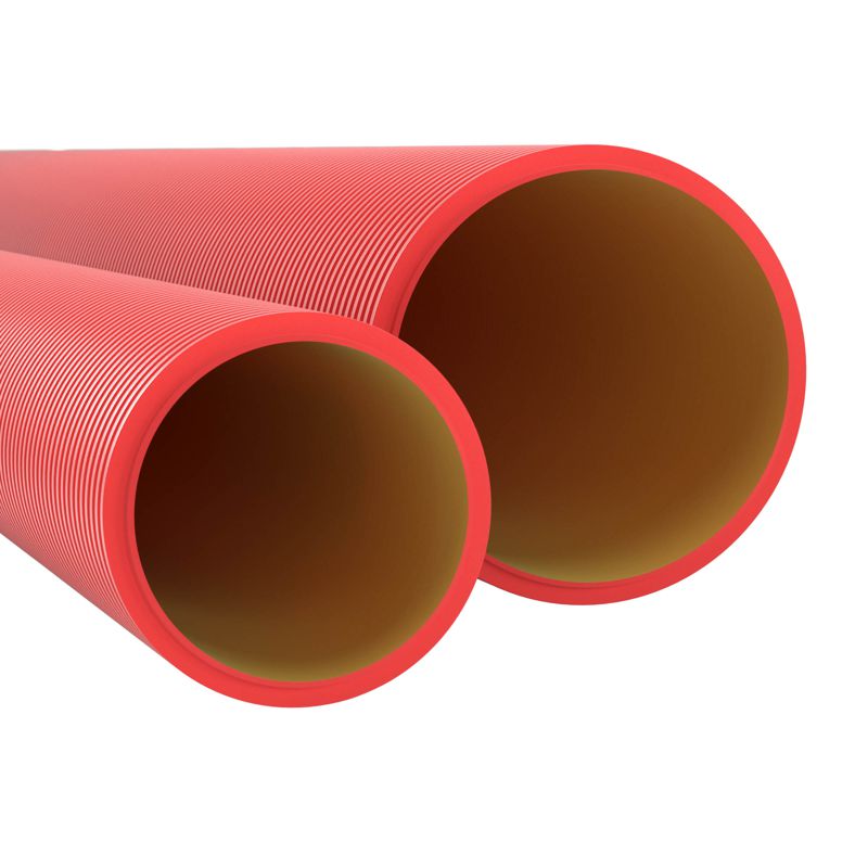 Двустенные жесткие трубы предназначены строго для скрытой прокладки: в грунте или в монолите строений. Трубы выдерживают значительные нагрузки, а потому могут использоваться даже в зонах с высокими нагрузками (например, на участках, предназначенных для проезда автотранспорта). Трубы надежно защищают кабель от любых внешних воздействий. Жесткая двустенная труба для кабельной канализации имеет диаметр 110 мм. Кольцевая жесткость (SN) 14 кПа. Поставляется отрезками по 6 метров. К каждому отрезку в комплекте идет соединительная муфта. Материал - ПНД. Цвет внешней стенки - красный.