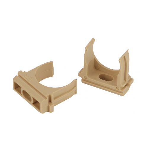 Используется для крепления гофрированных и гладких труб к поверхности стен или потолка. Для крепления к поверхности в крепёж-клипсе предусмотрено технологическое отверстие под саморез или дюбель.