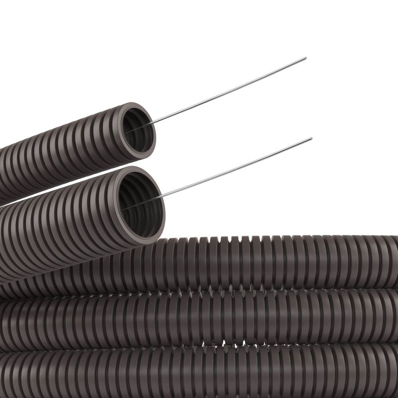 Труба гофрированная ПА d17мм ПВ-2 dвнутр. 16.8мм dнар. 21.2мм с протяж. черн. (уп.50м) DKC PA611721F2