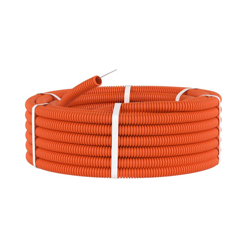 Гибкая гофрированная труба предназначена для прокладки в ней электрических, компьютерных, телевизионных кабелей. Она имеет проволочную протяжку для упрощения прокладки кабеля. Труба такого типа отличается повышенной прочностью и может использоваться в монолитном бетоностроении и для скрытой прокладки в стяжке полов (при этом основание должно быть выполнено из несгораемого материала) или же в штробах стен. Труба обеспечивает степень пыле- и влагозащиты до IP 55 (при использовании специальных аксессуаров), устойчива к старению.