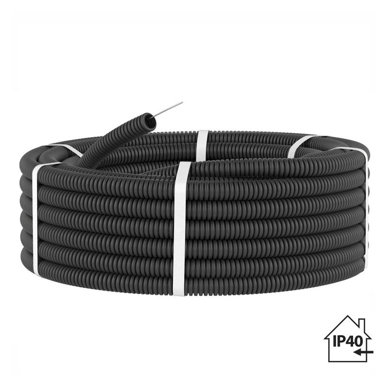 Труба гофрированная ПНД d32мм с протяжкой безгалоген. (HF) черн. (уп.50м) TOKOV ELECTRIC TKE-PND32-BL-50