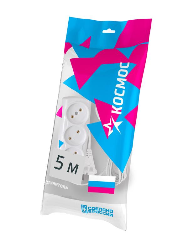 Удлинитель 3х5м 6А IP20 ПВС 2х0.75 КОСМОС YKsm5m-3g(6A)S -