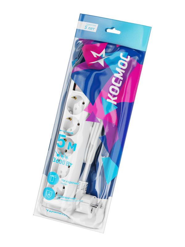 Удлинитель 5х5м с заземл. 16А IP20 ПВС 3х1 с выкл. КОСМОС YKsm5m-5g-Z-V(K)