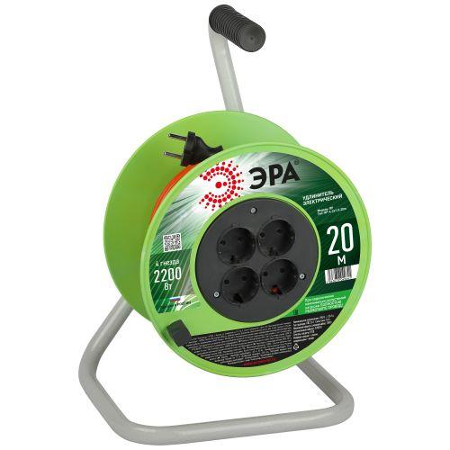 Удлинитель силовой на пластиковой катушке ЭРА RP-4-2x1.0-20m без заземления, 4 розетки, провод ПВС 2х1м2, 20 м. Мощность 10А/2200Вт. Используется для работы на строительных площадках или дачных участках. Удобен при работе с приборами, находящимися удаленно от стационарной розетки. Например, газонокосилки, электрические, пилы, триммеры или электродрели. Провод в удлинителях Эра сделан из 100% меди, что делает его абсолютно пожаробезопасным. Рама удлинителя сделана из высокопрочной стали, а пластиковой корпус выполнен с применением негорючих добавок.