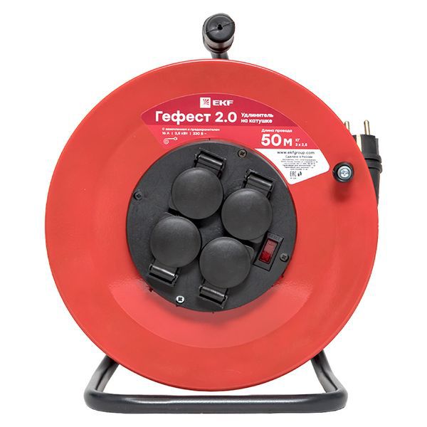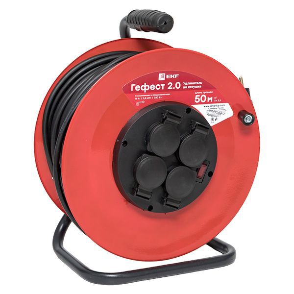 Удлинитель на катушке 4х50м с заземл. 16А IP44 Гефест 2.0 КГ 3х2.5 3.5кВт предохр. PROxima EKF UKG02-16-R325-4-50-IP44 -