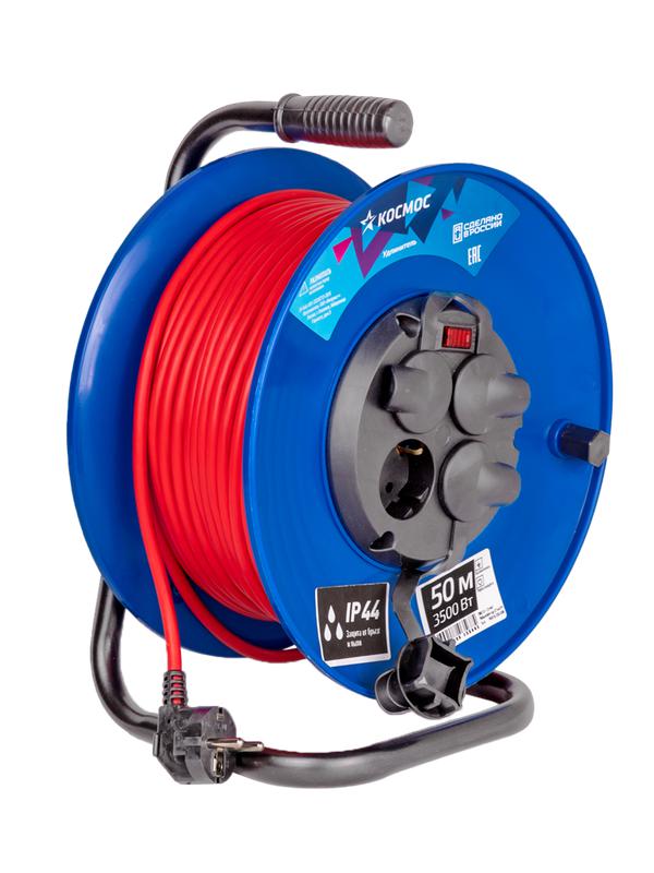 Удлинитель на катушке 4х50м с заземл. 16А IP44 3.5кВт ПВС 3х1 с терморазмыкателем КОСМОС YKKsm50m-4g-Z(16A)IP