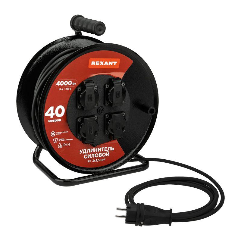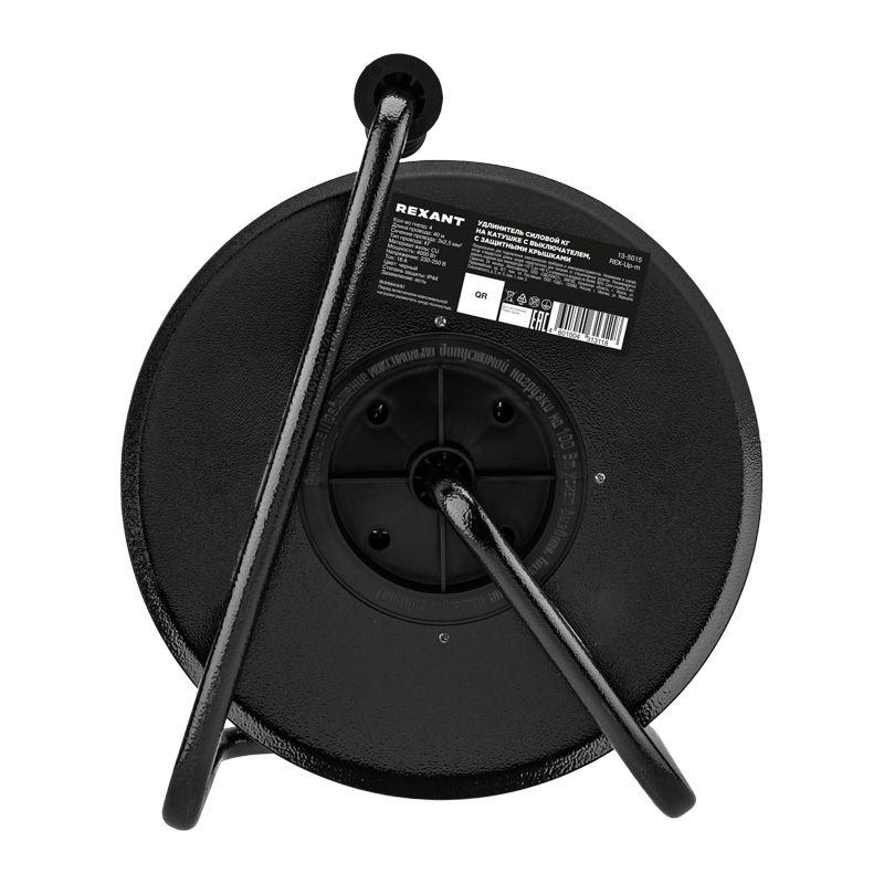 Удлинитель на метал. катушке 4х40м с заземл. IP44 КГ 3х2.5кв.мм с выключателем с защ. крышками Rexant 13-5015