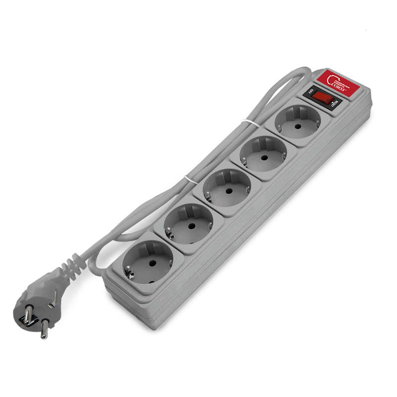 Удлинитель с сетевым фильтром 5х1.5м 10А IP21 ПВС 3х0.75 сер. Союз 1328