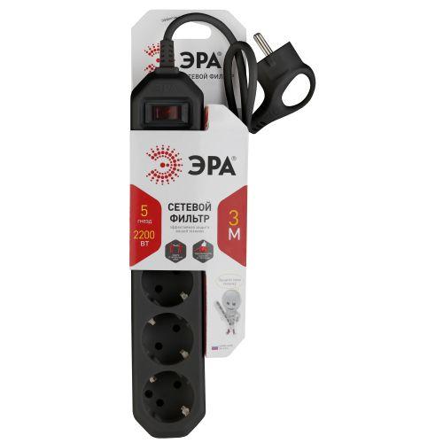 Удлинитель с сетевым фильтром 5х3м с заземл. 10А IP20 USF-5es-3m-B ПВС 3х0.75 с выкл. черн. Эра Б0019034