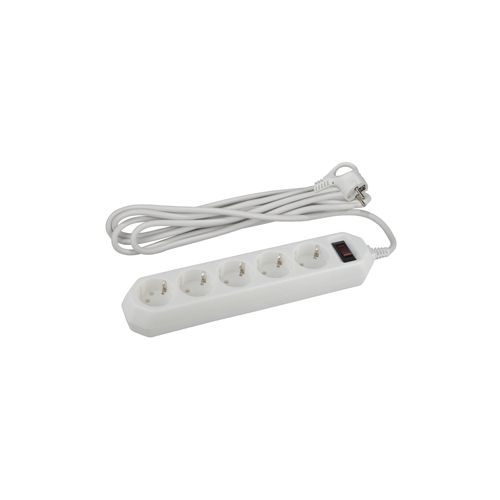 Удлинитель с сетевым фильтром 5х5м с заземл. 10А IP20 USF-5es-5m-W ПВС 3х0.75 с выкл. бел. Эра Б0019738