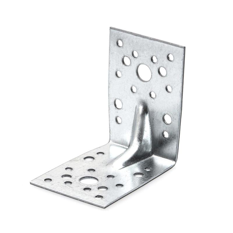Особенности: выдерживает высокие нагрузки, обеспечивает максимальную прочность и жесткость соединения. Наличие ребер жесткости позволяет фиксировать элементы строго под углом 90°. Благодаря тому, что на уголке имеются отверстия различного диаметра (5 и 12 мм), для монтажа можно использовать саморезы и гвозди.