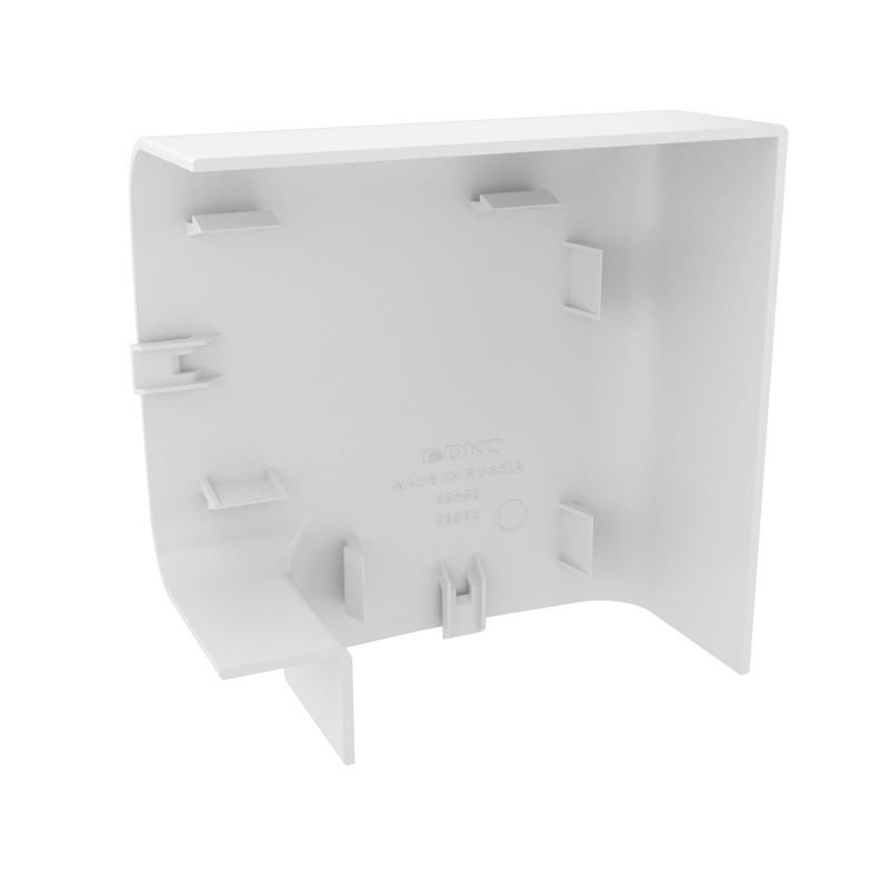 Угол плоский. Назначение: декоративное оформление мест стыковки кабельных коробов. Характеристики: материал накладки – АБС-пластик; материал базы и разделителей – ПП; встроенные перегородки для разделения внутреннего пространства на секции. Комплект поставки: внешняя декоративная накладка; внутренняя база с разделителем секций; инструкция по монтажу. Типоразмер 90х50. Цвет белый