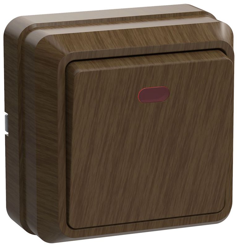Выключатель 1-кл. ОП ОКТАВА 10А IP20 с инд. дуб.ИЭК EVO11-K04-10-DC