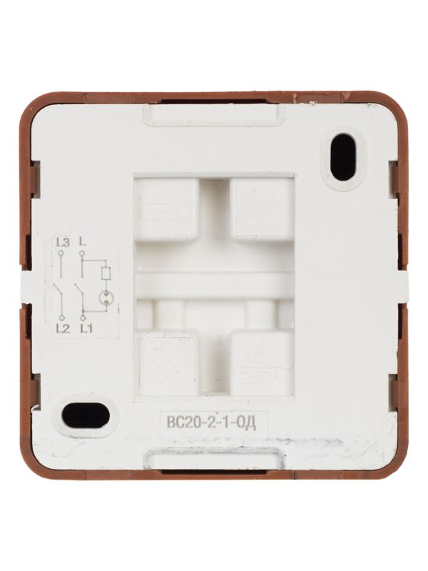 Выключатель 2-кл. ОП ОКТАВА 10А IP20 с индик. дуб ИЭК EVO21-K04-10-DC