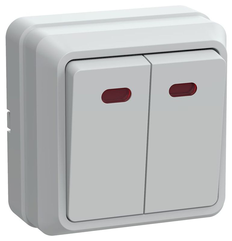 Выключатель 2-кл. ОП ОКТАВА с инд. 10А IP20 ВС20-2-1-ОБ бел. ИЭК EVO21-K01-10-DC