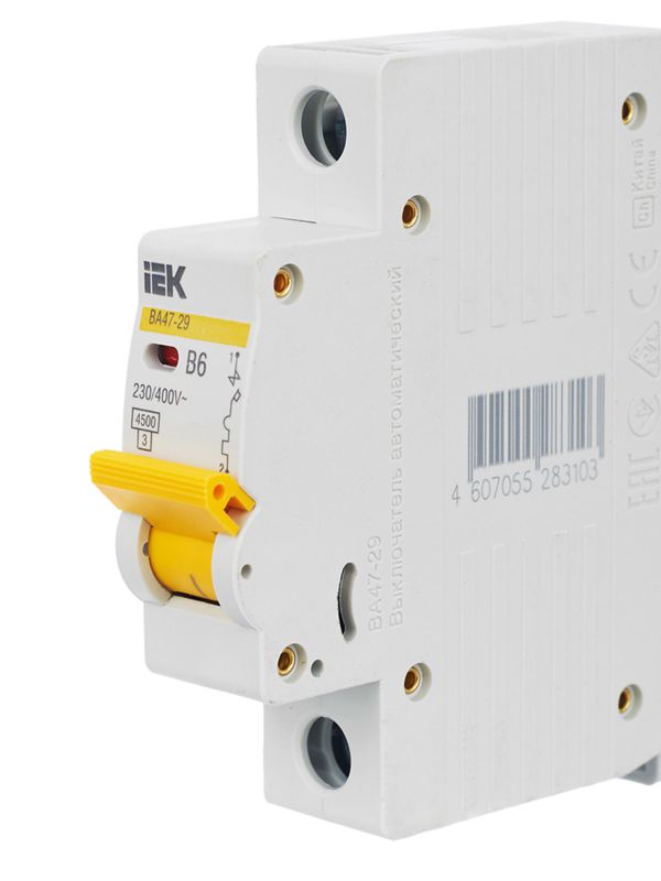 Выключатель автоматический модульный 1п B 6А 4.5кА ВА47-29 ИЭК MVA20-1-006-B