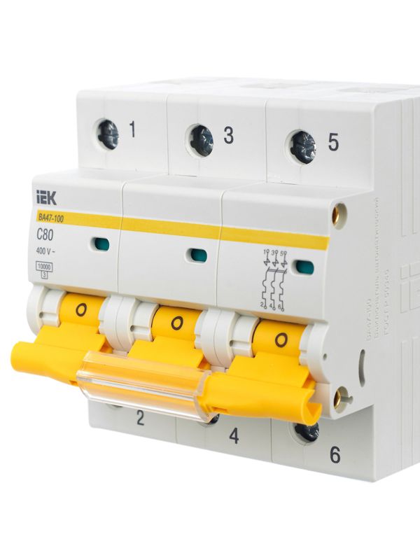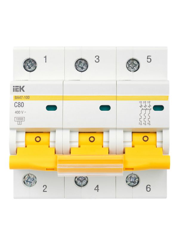 Выключатель автоматический модульный 3п C 80А 10кА ВА47-100 ИЭК MVA40-3-080-C