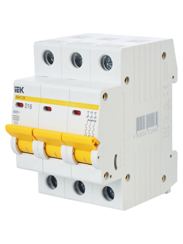 Выключатель автоматический модульный 3п D 16А 4.5кА ВА47-29 ИЭК MVA20-3-016-D