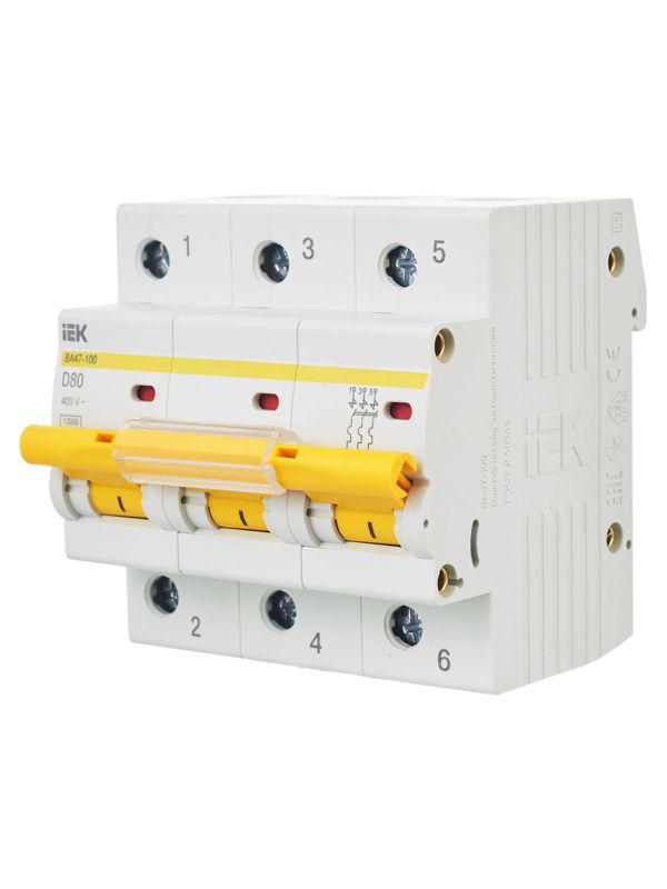 Выключатель автоматический модульный 3п D 80А 10кА ВА47-100 ИЭК MVA40-3-080-D