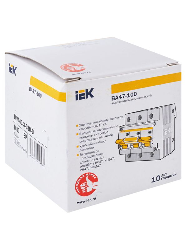 Выключатель автоматический модульный 3п D 80А 10кА ВА47-100 ИЭК MVA40-3-080-D -