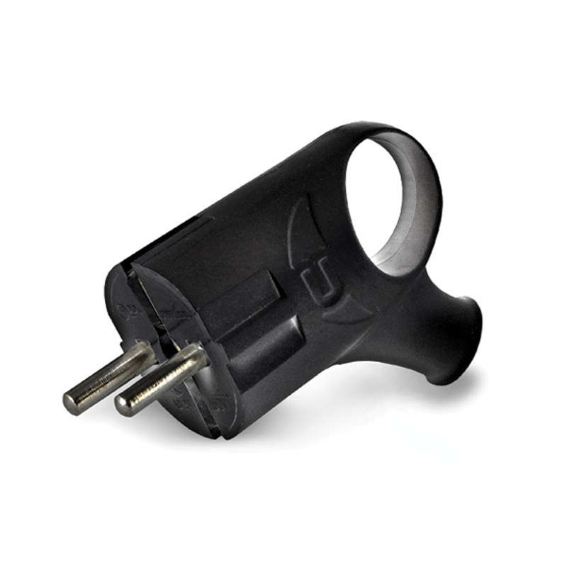 Вилка электрич. с заземл. угл. с ушком черн. 16А 250В (еврослот) UNIVersal А0112 – электроустановочный аксессуар, устройство подключения к сети бытовых электроприборов.
