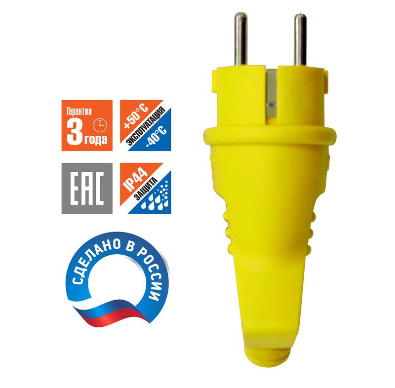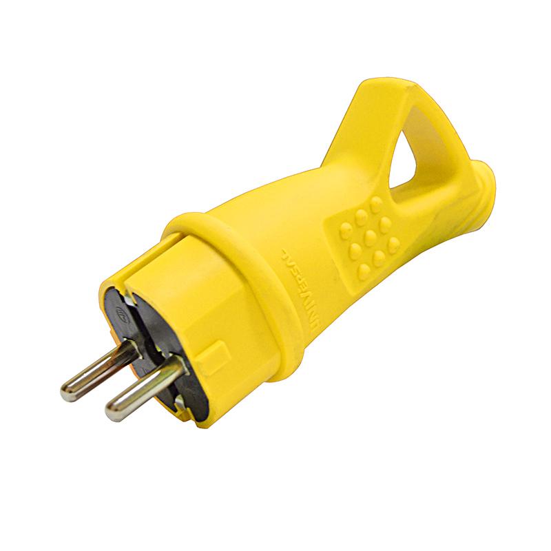Вилка электрическая 1ф 16А 250В IP44 однофазная с ушком каучук желт. Universal 3080