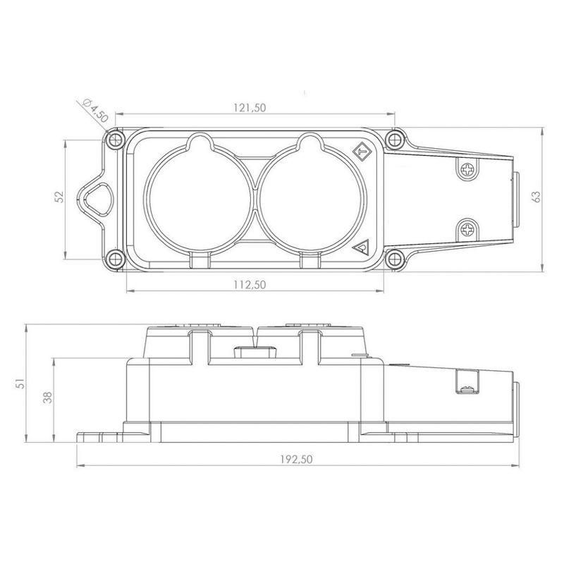 Степень защиты IP54 позволяет использовать розетку для организации электропитания под открытым небом, а в дождь – под навесом. Не допускается погружение в воду.