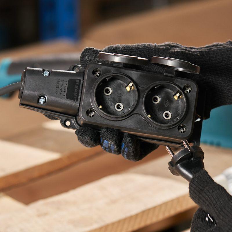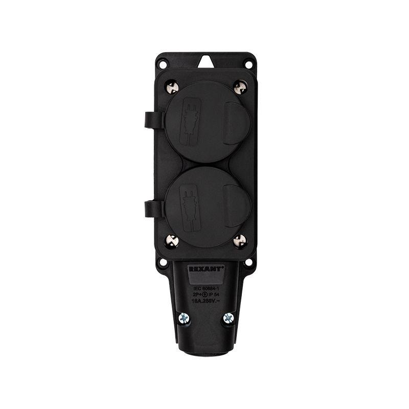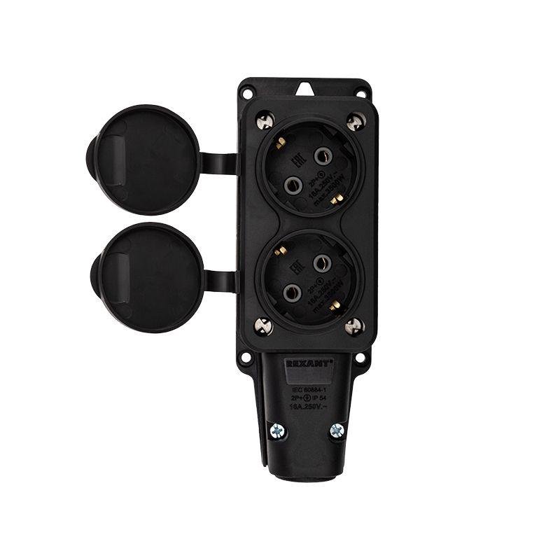 Розетка штепсельная двухместная влагозащ. с/з 16А IP54 каучук Rexant 111-112