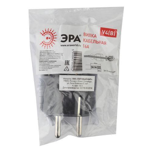 Вилка V4(B) 16А с заземл. прямой ввод (10/200/6000) черн. ЭРА Б0019189