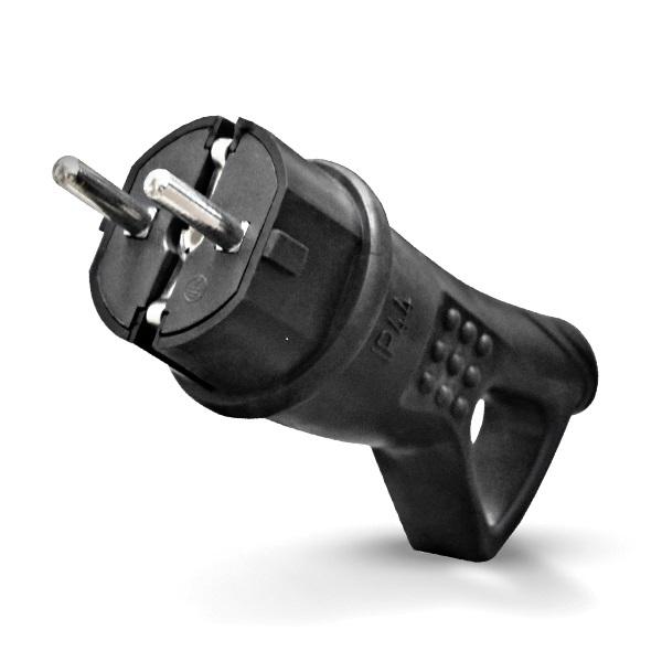 Однофазная каучуковая вилка с ушком, предназначенная для подключения электрооборудования к сети переменного тока. Изделие выполнено в прочном каучуковом корпусе черного цвета.