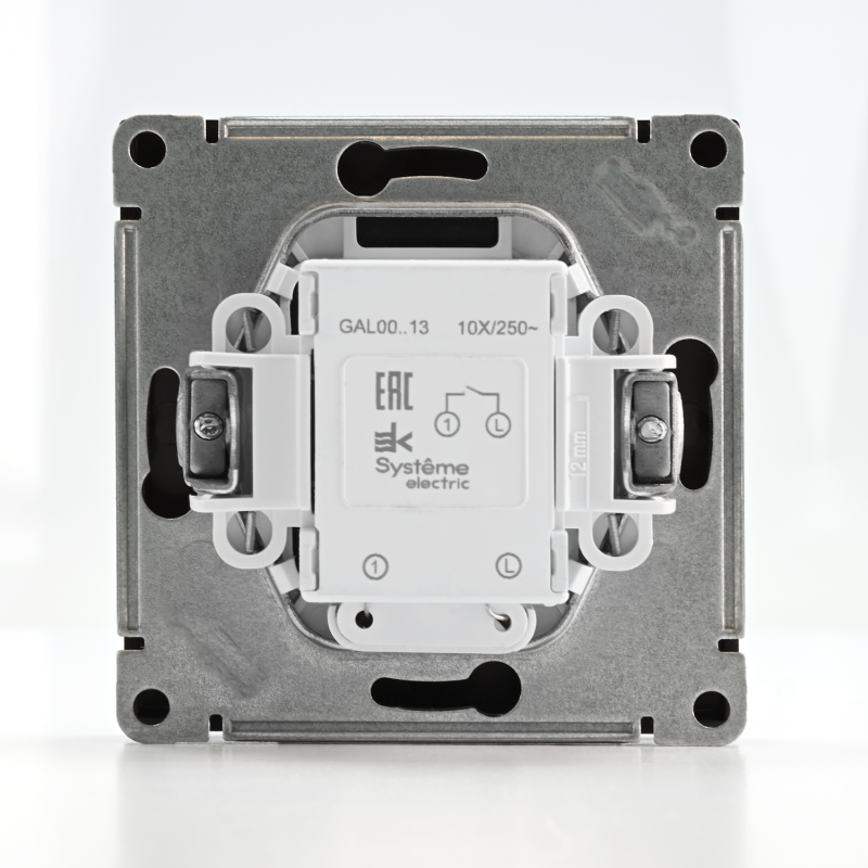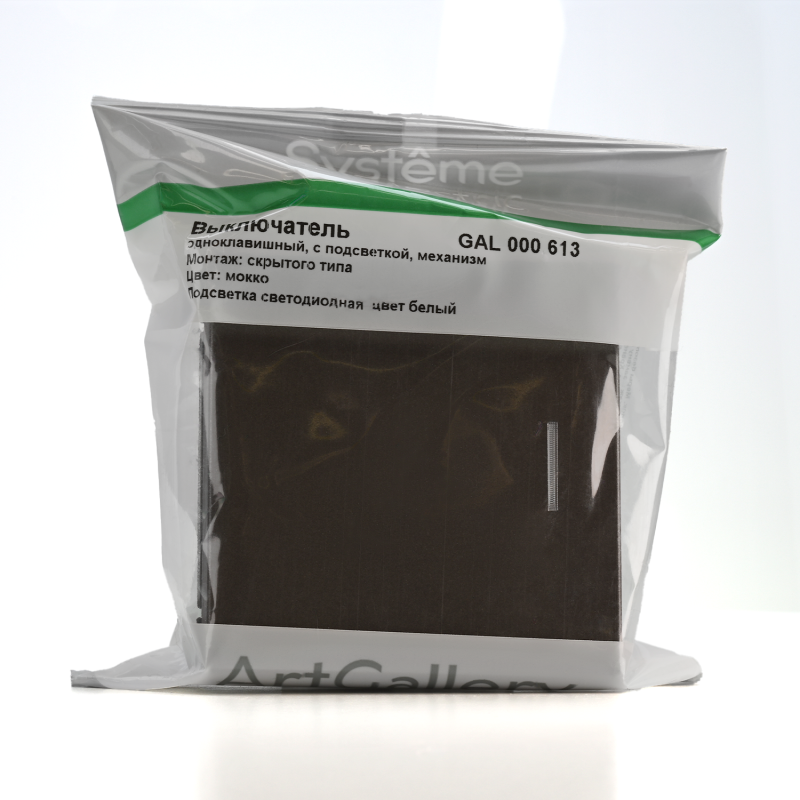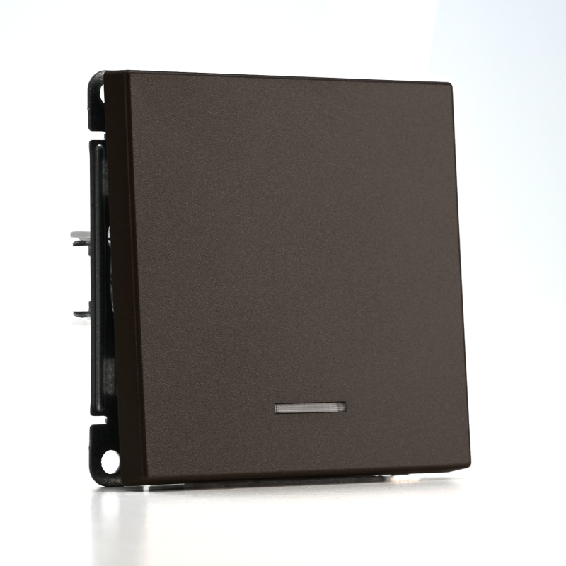 Механизм Systeme Electric серии ArtGallery в цвете мокко выключателя 1-клавишного с подсветкой подходит для сетей 250 В, на ток 10 А.
