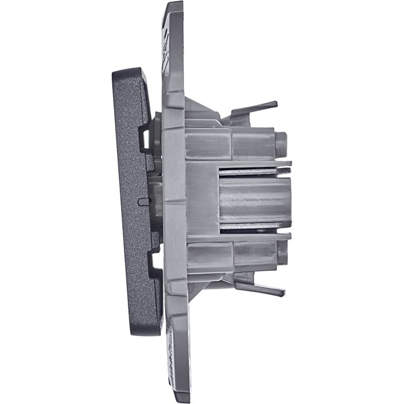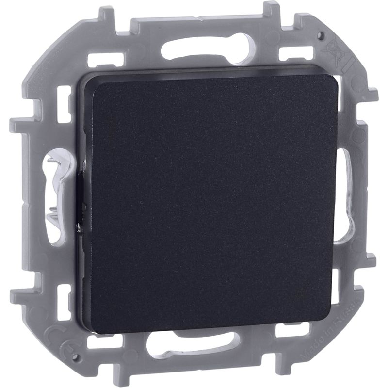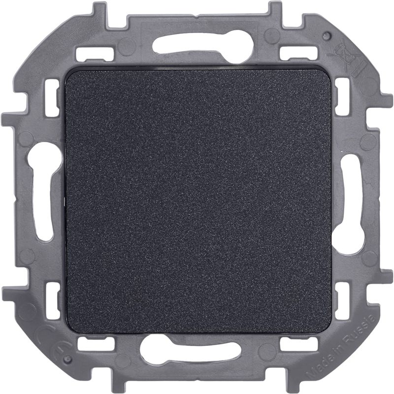 Выключатель одноклавишный скрытого монтажа Inspiria, цвет "Антрацит", номинальный ток 10АХ, напряжение ~250В, безвинтовые зажимы. Устанавливается в жилых и общественных помещениях для управления приборами освещения, вентиляции и т.д.