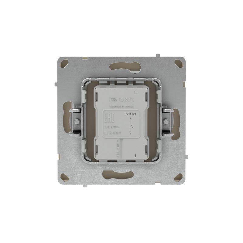 Одноклавишный выключатель применяется для управления контуром освещения. Выключатель предназначен для скрытого монтажа в стену. Характеристики устройства: номинальное напряжение 250 В, номинальный ток 16 А. Материал: металл, поликарбонат. Пластиковые элементы устройства имеют цвет "Ванильный марципан". Для декоративного оформления электроустановочных изделий используются рамки серии "KANT".